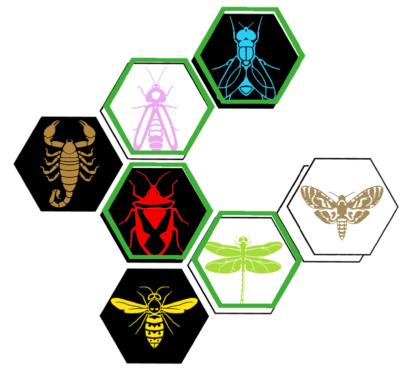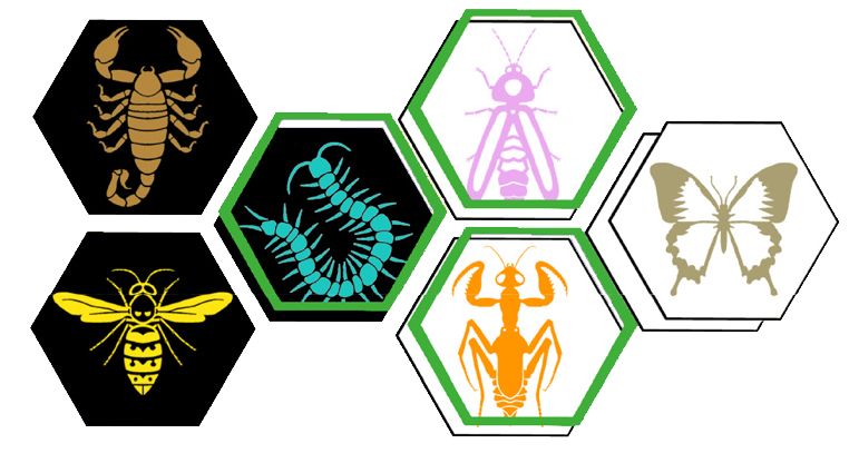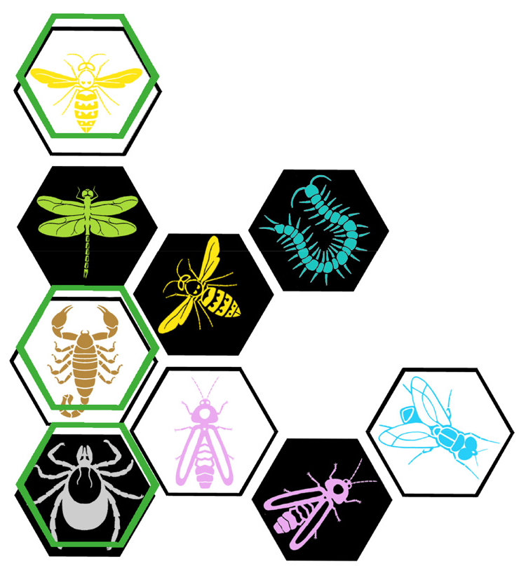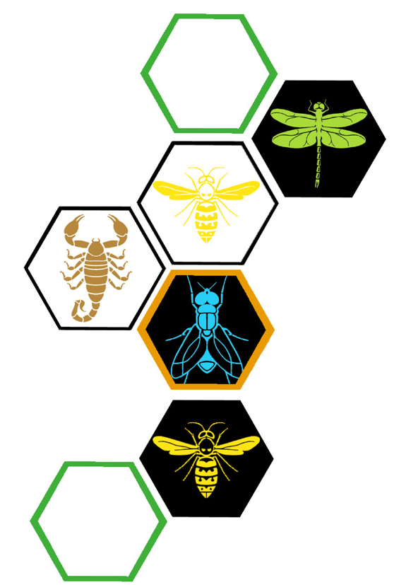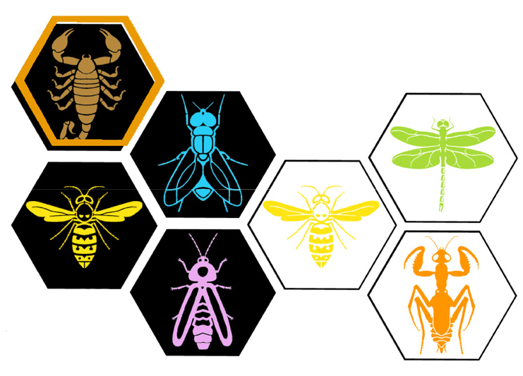 Základní hra obsahuje 5 typů brouků. Počet brouků ve hře je znázorněn vedle názvu