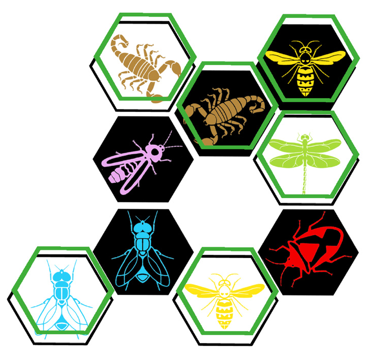 Tyto kameny mohou být přidány ke standardní sadě Hive a mohou být nasazovány stejným způsobem jako ostatní kameny. Jakmile je ve hře, tak může Komár použít pohybovou schopnost libovolného hmyzu jakékoli barvy, kterého se na začátku svého pohybu dotýká (hromádka s Broukem nahoře se pro tento účel počítá jako Brouk). Takto Komár mění svůj druh pohybu během celé hry.